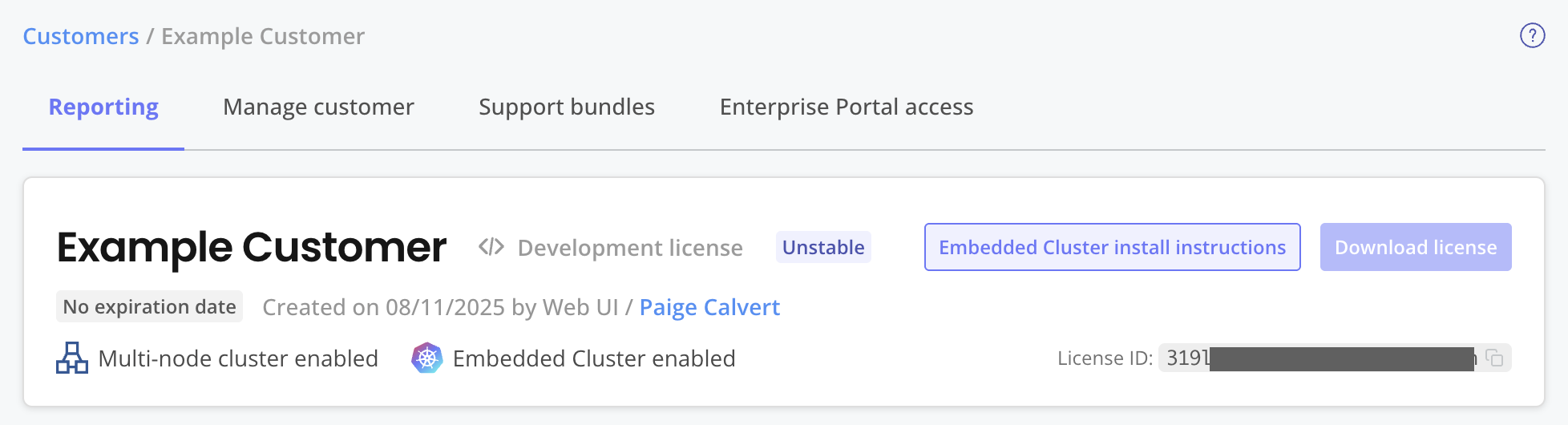 1. In the Vendor Portal, on the page for the customer that you created, click Embedded Cluster install instructions.